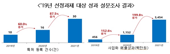 산학연 Collabo R&D는 2018년 예비타당성조사를 통과하여 2019년부터 2028년까지 10년간 총사업비 3770억원(국비 5030억원)으로 운영되는 중기부의 대표적인 산학연 협력기술개발사업입니다.그동안 자체 기술개발에 어려움이 있는 중소기업이 대학·연구기관의 인력·기술 등을 활용해 사업화 성과를 높일 수 있도록 14개 과제에 1,397억원을 지원해 왔습니다.산학연 Collabo R&D 성과조사(2019년도 선정 250과제 대상 설문조사) 결과 해당 사업을 통해 특허등록(2019년 10건, 2021년 30건), 사업화 매출(2019년 4.6억원, 2021년 35억원) 등 사업 성과가 나타났습니다.